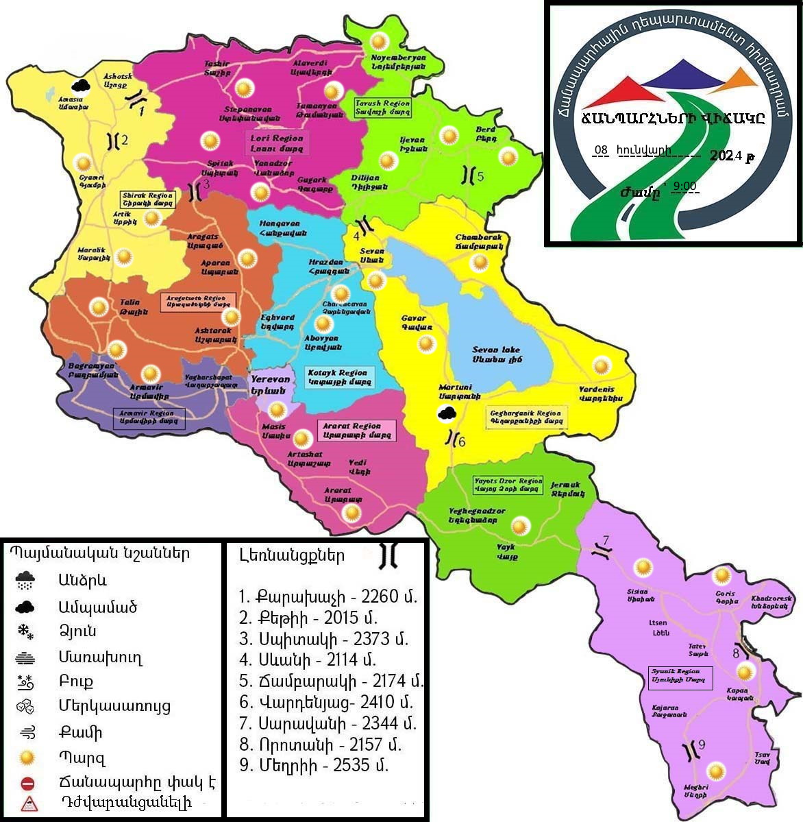Իրավիճակը ճանապարհներին. 08.01.2024